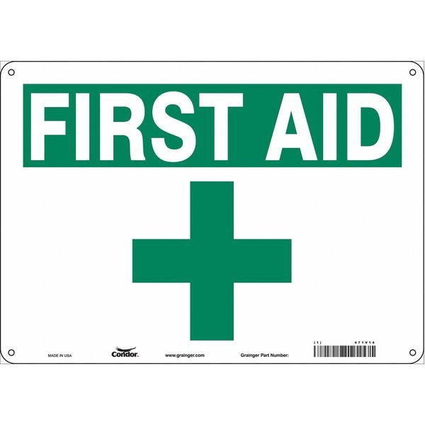 First Aid, 14 in W x 10 in H, Horizontal Rectangle, Aluminum, 471V10