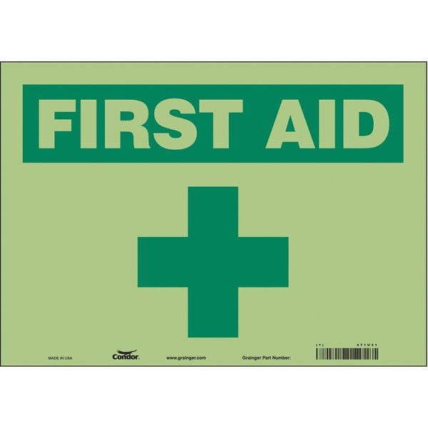 First Aid, 14 in W x 10 in H, Horizontal Rectangle, Glow Vinyl, 471U51
