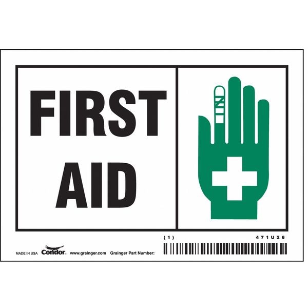 First Aid, 5 in W x 3 1/2 in H, Horizontal Rectangle, Vinyl, 471U26
