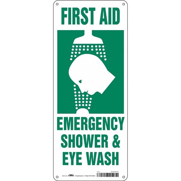 Safety Sign, Horizontal Rectangle, Number of Printed Sides 1, English, Sign Format Other Format, Sign Legend First Aid Emergency Shower & Eye Wash, Sign Legend Background Color Green; White, Sign Legend Style Symbol and Text