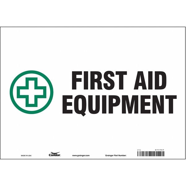 First Aid Equipment, 14 in W x 10 in H, Horizontal Rectangle, Vinyl, 471T07