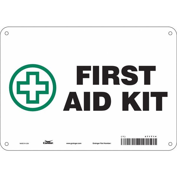 First Aid Sign, Vertical Rectangle, Number of Printed Sides 1, English, Sign Legend First Aid Kit, Sign Legend Background Color White, Sign Legend Style Symbol and Text