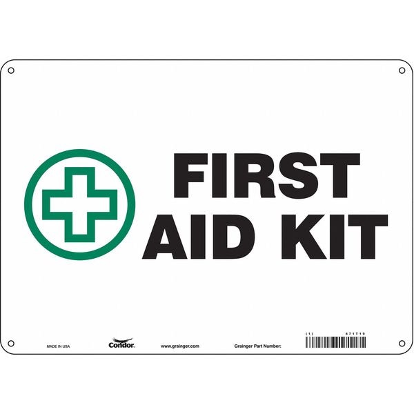First Aid Sign, Horizontal Rectangle, Number of Printed Sides 1, English, Sign Legend First Aid Kit, Sign Legend Background Color White, Sign Legend Style Symbol and Text