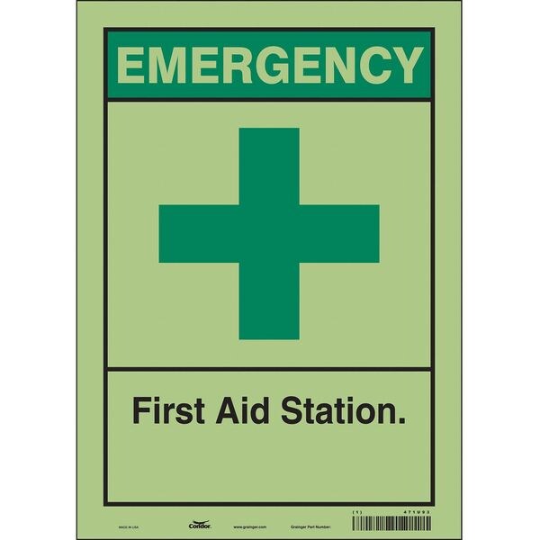 First Aid Station, 10 in W x 14 in H, Vertical Rectangle, Glow Vinyl, 471U93