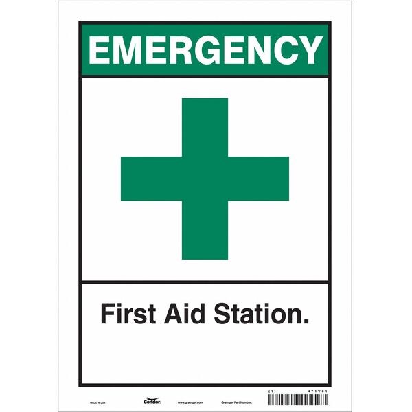 First Aid Sign, Vertical Rectangle, Number of Printed Sides 1, English, Sign Format Other Format, Sign Legend First Aid Station., Sign Legend Background Color Green, White, Sign Legend Style Symbol and Text