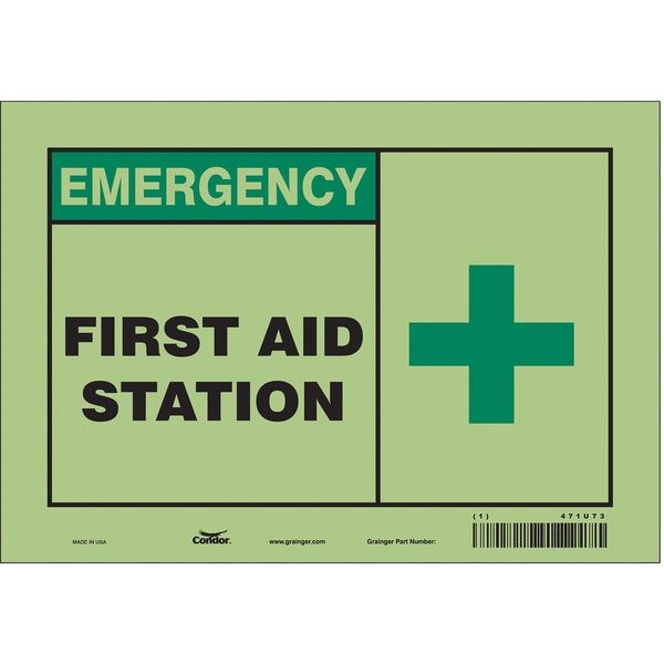 First Aid Station, 10 in W x 7 in H, Vertical Rectangle, Glow Vinyl, 471U73