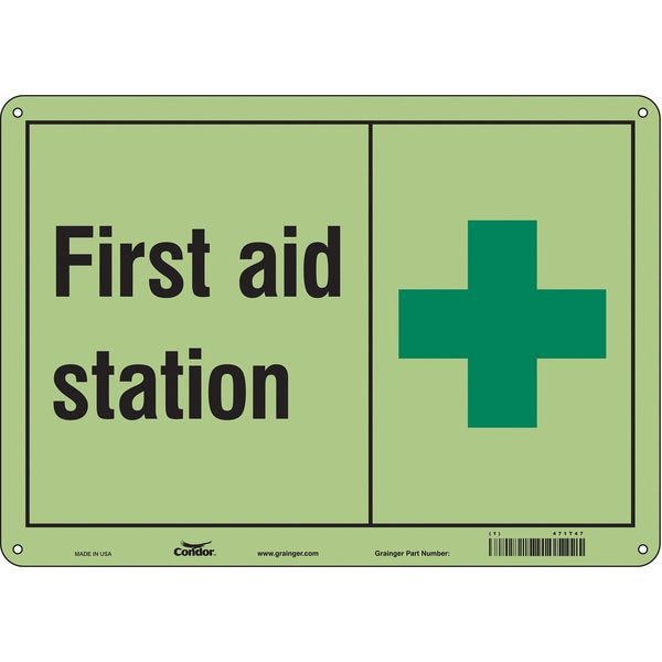 First Aid Station, 14 in W x 10 in H, Horizontal Rectangle, Glow Vinyl, 471T47