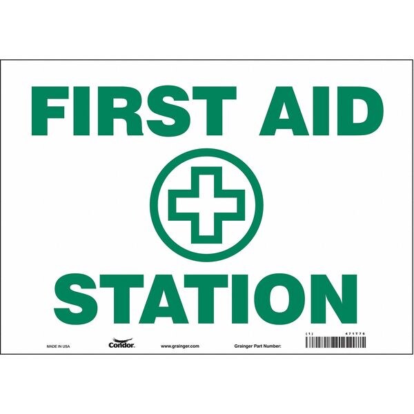 First Aid Sign, Horizontal Rectangle, Number of Printed Sides 1, English, Sign Format Other Format, Sign Legend First Aid Station, Sign Legend Background Color White, Sign Legend Style Symbol and Text