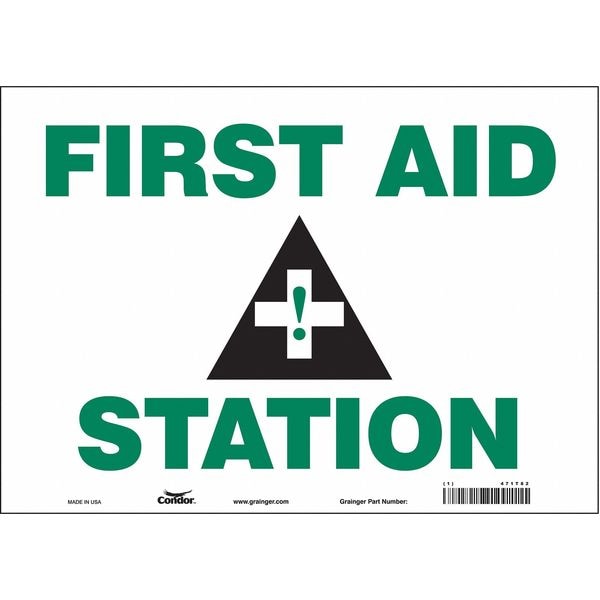First Aid Sign, Horizontal Rectangle, Number of Printed Sides 1, English, Sign Format Other Format, Sign Legend First Aid Station, Sign Legend Background Color White, Sign Legend Style Symbol and Text