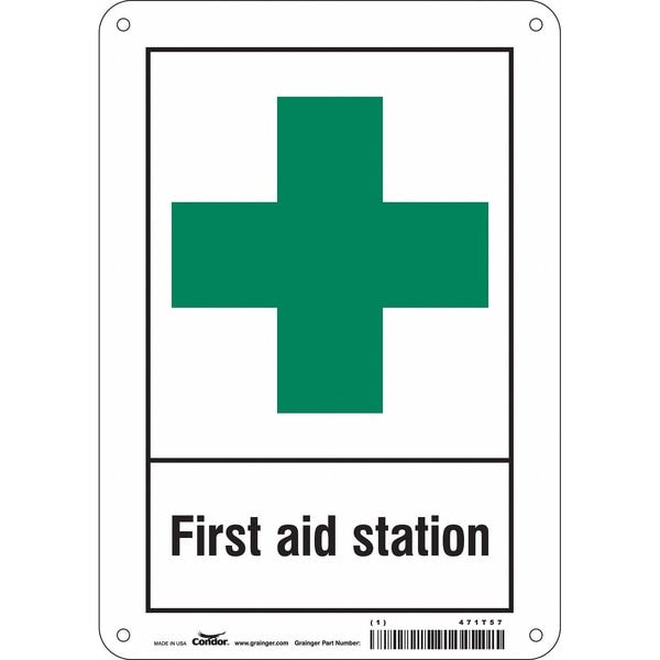 First Aid Station, 7 in W x 10 in H, Horizontal Rectangle, Aluminum, 471T57