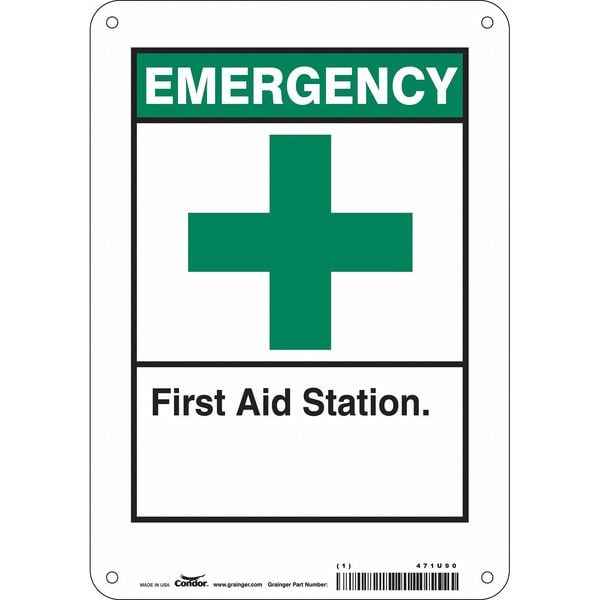 First Aid Station, 7 in W x 10 in H, Horizontal Rectangle, Aluminum, 471U90