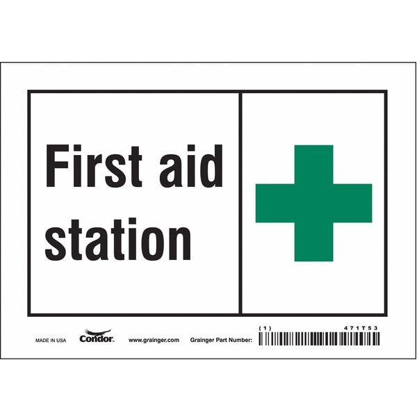 First Aid Station, 7 in W x 5 in H, Horizontal Rectangle, Vinyl, 471T53