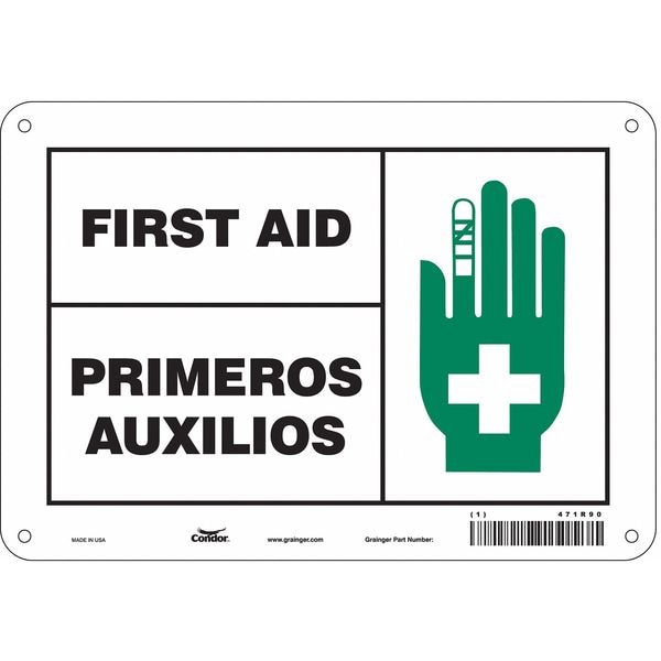 First Aid/Primeros Auxilios, 10 in W x 7 in H, Vertical Rectangle, Aluminum, 471R90