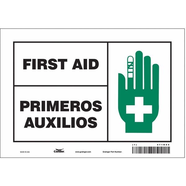 First Aid/Primeros Auxilios, 10 in W x 7 in H, Vertical Rectangle, Vinyl, 471R95