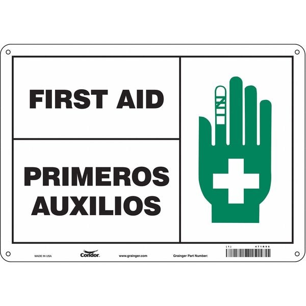 First Aid/Primeros Auxilios, 14 in W x 10 in H, Horizontal Rectangle, Vinyl, 471R96