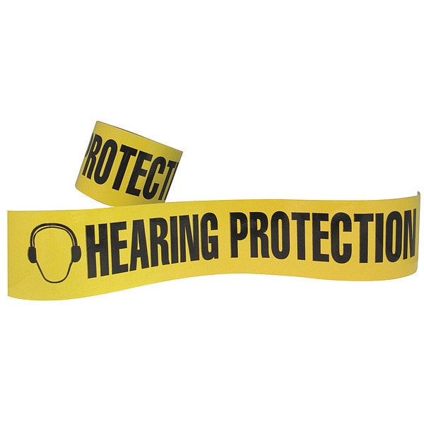 Floor Marking Tape, Continuous Roll, Message, Black/Yellow, 3 in, 54 ft, 5.5 mil, Vinyl, Approved Vendor, Legend Hearing Protection, Message Color Black, Glow In The Dark No, Retroreflective Grade Non-Reflective