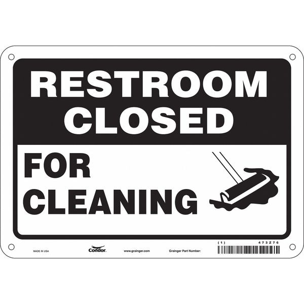 Restroom Sign, Vertical Rectangle, Number of Printed Sides 1, English, Sign Legend For Cleaning, Sign Legend Background Color Black, White, Sign Legend Style Symbol and Text