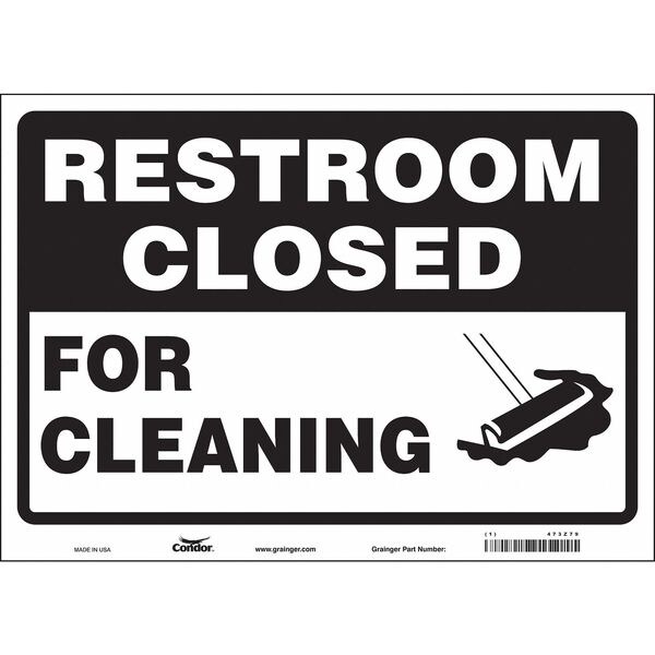 Restroom Sign, Horizontal Rectangle, Number of Printed Sides 1, English, Sign Format Other Format, Sign Legend For Cleaning, Sign Legend Background Color Black, White, Sign Legend Style Symbol and Text