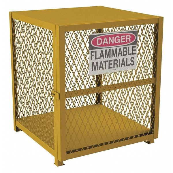 Cylinder Storage Cabinet, Assembled Assembled, Color Yellow, Compatible Tank Size 50 lb, Construction Welded, Cylinder Storage Orientation Vertical, Door Closure Type Manual, Door Handle Type Hasp Lock, Door Type Hinged, Exterior Depth 29 3/4 in, Exterior Height 34 7/8 in, Exterior Width 30 1/8 in, Finish Powder Coated, Fire Lined Fire Lining Not Included, Floor Construction Solid, Horizontal Cylinder Capacity Not Applicable, Includes (2) Identification Labels, (2) Warning Labels