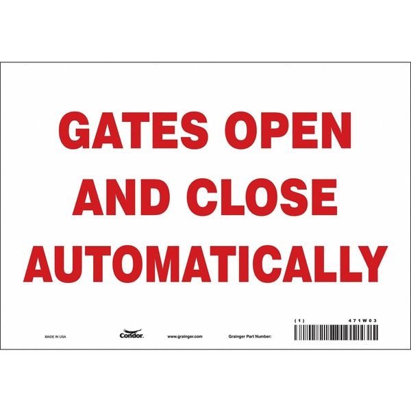Safety Sign, Vertical Rectangle, Number of Printed Sides 1, English, Sign Format Other Format, Sign Legend Gates Open And Close Automatically, Sign Legend Background Color White, Sign Legend Style Text