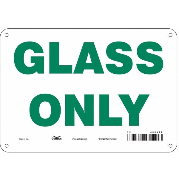 Safety Sign, Vertical Rectangle, Number of Printed Sides 1, English, Sign Format Other Format, Sign Legend Glass Only, Sign Legend Background Color White, Sign Legend Style Text