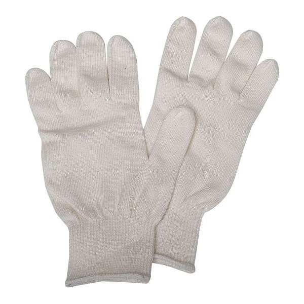 Glove Liners, Gen Purpose, Cotton/Polyester, Knit Cuff, 9 1/4 in L, White, Universal Size, 1 Pair