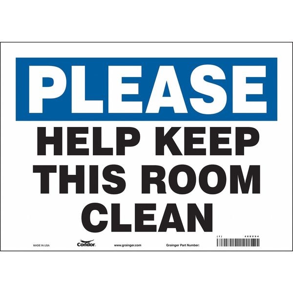 HELP KEEP THIS ROOM CLEAN, 14 in W x 10 in H, Horizontal Rectangle, Vinyl, 468V94