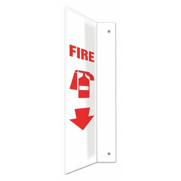 High Visibility Safety Sign, L-Shape Projection, Number of Printed Sides 2, English, Sign Legend Fire, Sign Legend Background Color White, Sign Legend Style Symbol and Text
