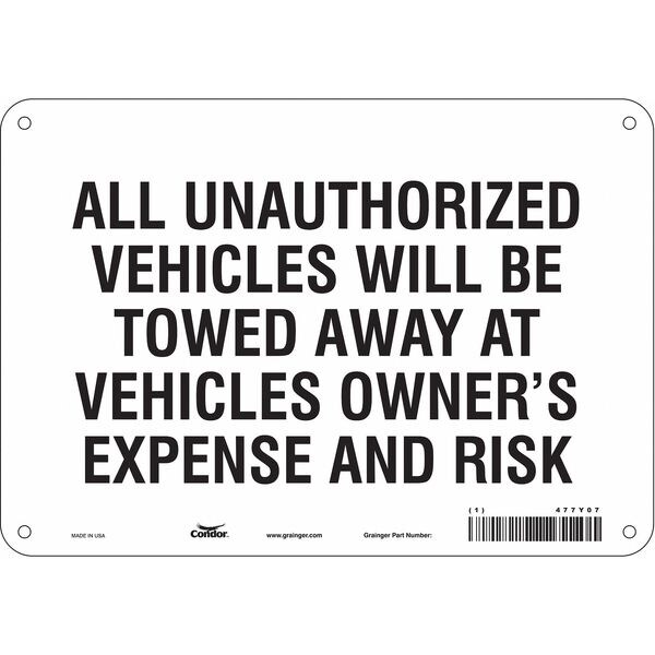 Illegal & Unauthorized Vehicles Will Be Towed Parking Sign, Height 7 in, Width 10 in, Sign Material Aluminum, Sign Mounting Style Mounting Holes, Printed Language English, Sign Shape Horizontal Rectangle