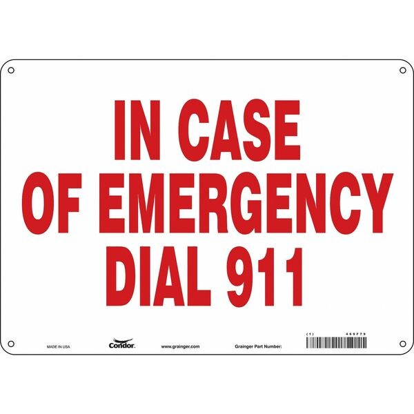 IN CASE OF EMERGENCY DIAL 911, 14 in W x 10 in H, Horizontal Rectangle, Polyethylene, 469F79