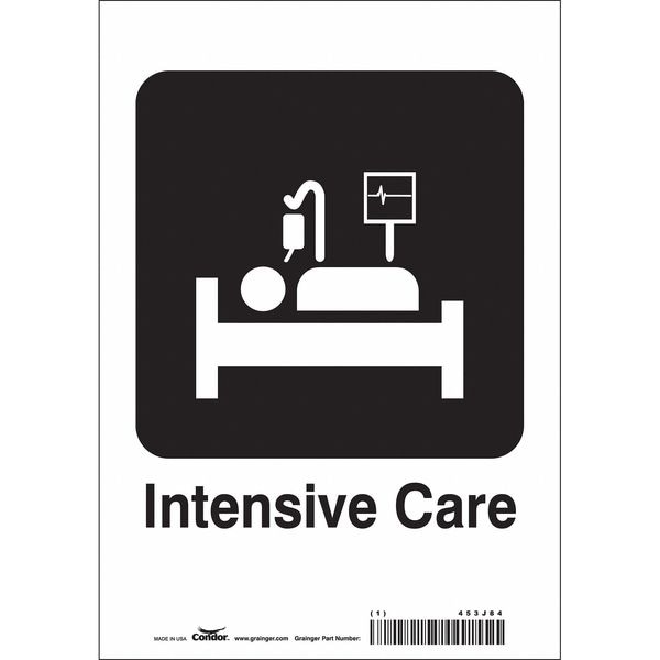 Hospital Sign, Horizontal Rectangle, Number of Printed Sides 1, English, Sign Format Other Format, Sign Legend Intensive Care, Sign Legend Background Color Black, White, Sign Legend Style Symbol and Text