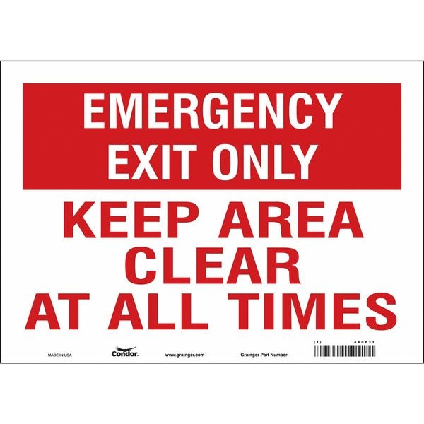 Safety Sign, Horizontal Rectangle, Number of Printed Sides 1, English, Sign Legend Keep Area Clear At All Times, Sign Legend Background Color Red, White, Sign Legend Style Text