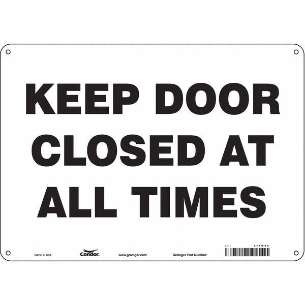 Keep Door Closed At All Times, 14 in W x 10 in H, Horizontal Rectangle, Polyethylene, 471W09