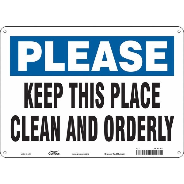 KEEP THIS PLACE CLEAN AND ORDERLY, 14 in W x 10 in H, Horizontal Rectangle, Polyethylene, 468V74