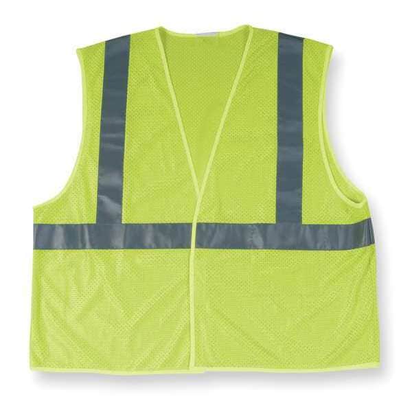 High Visibility Vest, ANSI Class 2, Vest Size 50 In., Traffic Safety Vest Color Yellow/Green, Fits Chest Size 50 In., Gender Unisex, Stripe Color Silver, Vest Material Polyester, Vest Closure Type Hook-and-Loop, ATPV Rating Not Rated, Vest Stripe Color Family Green/Yellow/Silver, Back Stripe Pattern U, Vest Length 27 in, Number of Pockets (Inside) 1, Number of Pockets (Outside) 0, Number of Pockets with Closure 0, Features Polyester Mesh, Standards Meets ANSI-ISEA 107-2010
