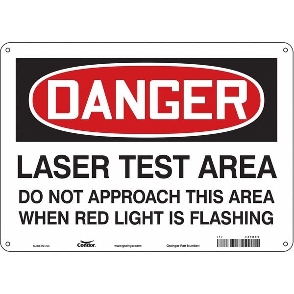 Laser Warning Sign, Horizontal Rectangle, Number of Printed Sides 1, English, Sign Format Traditional OSHA, Sign Legend Laser Test Area Do Not Approach This Area When Red Light Is Flashing, Sign Legend Background Color White, Sign Legend Style Text