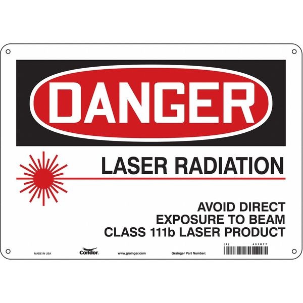 Laser Warning Sign, Horizontal Rectangle, Number of Printed Sides 1, English, Sign Format Traditional OSHA, Sign Legend Laser Radiation Avoid Direct Exposure To Beam Class 111B Laser Product, Sign Legend Background Color White, Sign Legend Style Symbol and Text