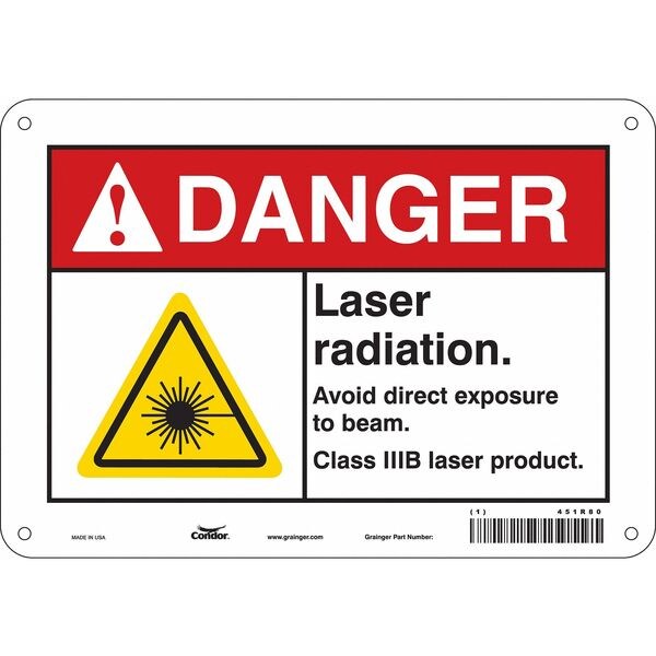 Laser Warning Sign, 7 in H, 10 in W, Aluminum, Vertical Rectangle, 451R80