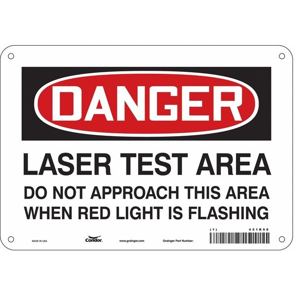 Laser Warning Sign, Vertical Rectangle, Number of Printed Sides 1, English, Sign Format Traditional OSHA, Sign Legend Laser Test Area Do Not Approach This Area When Red Light Is Flashing, Sign Legend Background Color White, Sign Legend Style Text