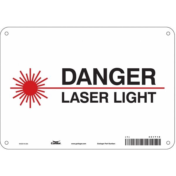 Laser Warning Sign, 7 in H, 10 in W, Polyethylene, Vertical Rectangle, 451T18