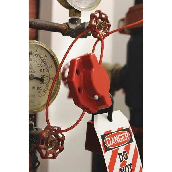 Cable Lockout, Body Color Red, Body Material Polycarbonate, Cable Color Red, Cable Diameter 1/8 in, Cable Length 3 ft, Cable Lockout Type Hasp Style, Cable Material Steel, Cable Material Finish Plastic, For Maximum Padlock Shackle Diameter 9/32 in, Includes Cable Yes, Maximum Number of Padlocks 4, Resistance Properties UV Resistant, Application Valves, Body Height 3 in, Body Length 3 in, Body Width 1.5 in, Standards OSHA 1910.147