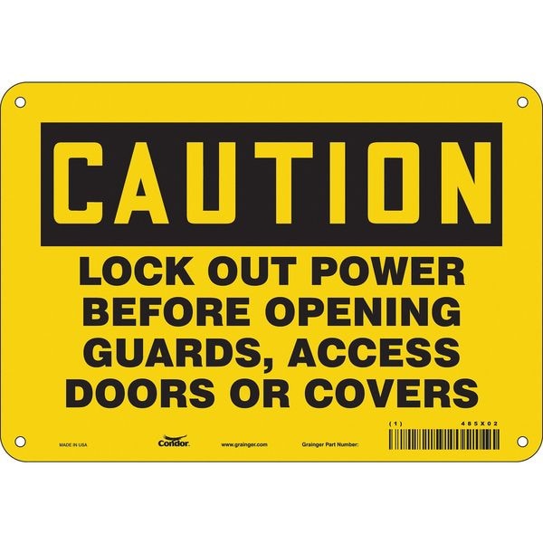 Lockout Sign, Vertical Rectangle, Number of Printed Sides 1, English, Sign Format Traditional OSHA, Sign Legend Lock Out Power Before Opening Guards, Access Doors Or Covers, Sign Legend Background Color Yellow, Sign Legend Style Text