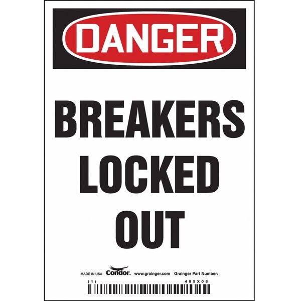 Lockout Sign, Vertical Rectangle, Number of Printed Sides 1, English, Sign Format Traditional OSHA, Sign Legend Breakers Locked Out, Sign Legend Background Color White, Sign Legend Style Text