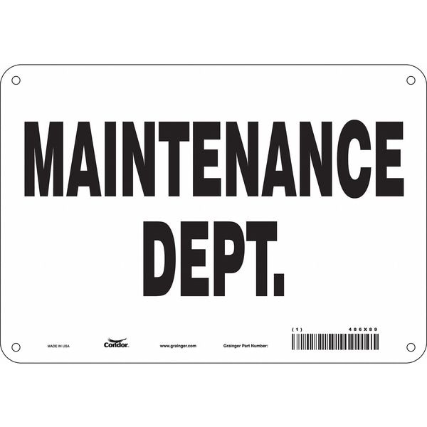 MAINTENANCE DEPT., 10 in W x 7 in H, Vertical Rectangle, Aluminum, 486X89