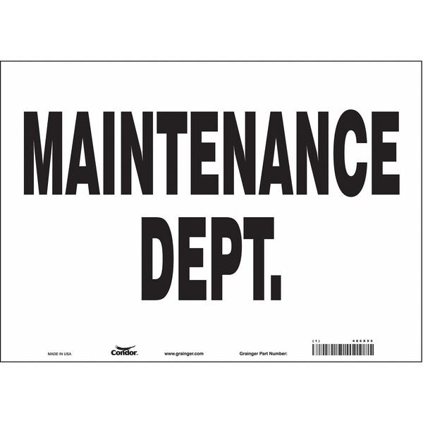 Safety Sign, Horizontal Rectangle, Number of Printed Sides 1, English, Sign Format Other Format, Sign Legend Maintenance Dept., Sign Legend Background Color White, Sign Legend Style Text