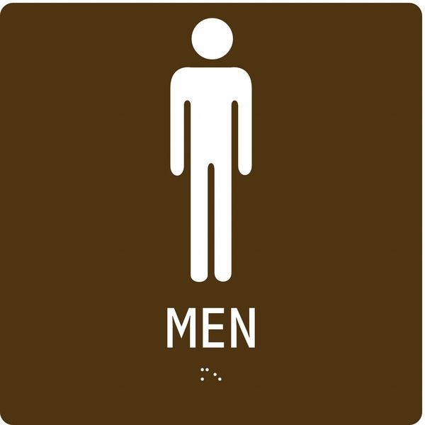 Safety Sign, Square, Number of Printed Sides 1, English, Sign Legend Men, Sign Legend Background Color Brown, Sign Legend Style Symbol and Text
