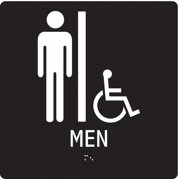 Safety Sign, Square, Number of Printed Sides 1, English, Sign Legend Men, Sign Legend Background Color Black, Sign Legend Style Symbol and Text