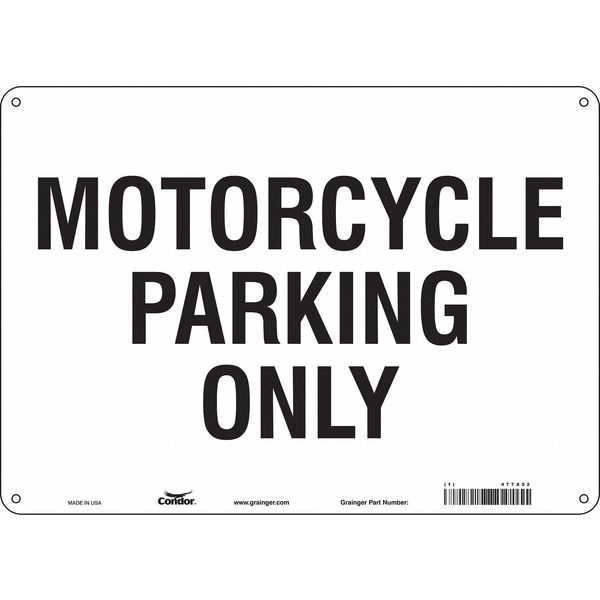 Motorcycle Parking Sign, Height 10 in, Width 14 in, Sign Material Aluminum, Sign Mounting Style Mounting Holes, Printed Language English, Sign Shape Horizontal Rectangle