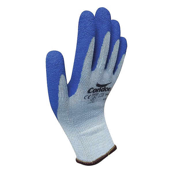 Natural Rubber Latex Coated Gloves, Palm Coverage, Blue, XL, PR