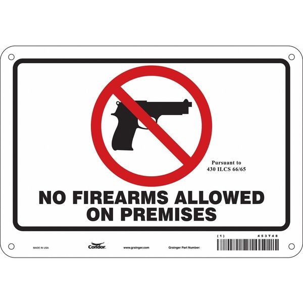 No Concealed Weapons Sign, Vertical Rectangle, Number of Printed Sides 1, English, Sign Legend No Firearms Allowed On Premises Pursuant To 430 Ilcs 66/65, Sign Legend Background Color White, Sign Legend Style Symbol and Text